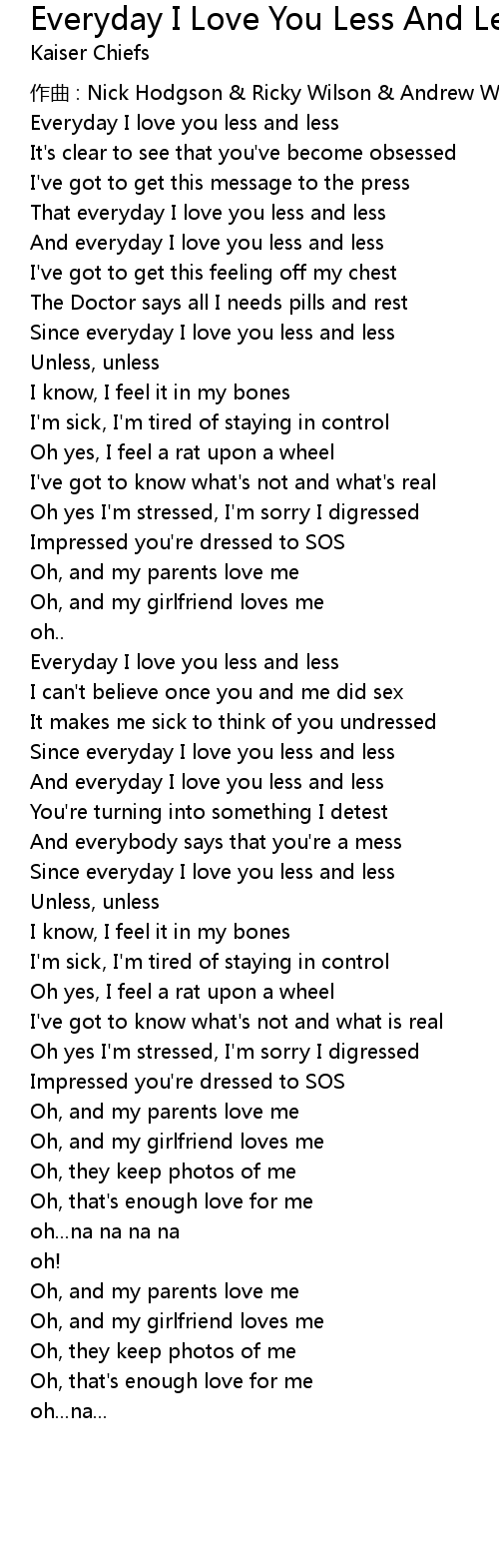 | Everyday I love you less and less | |