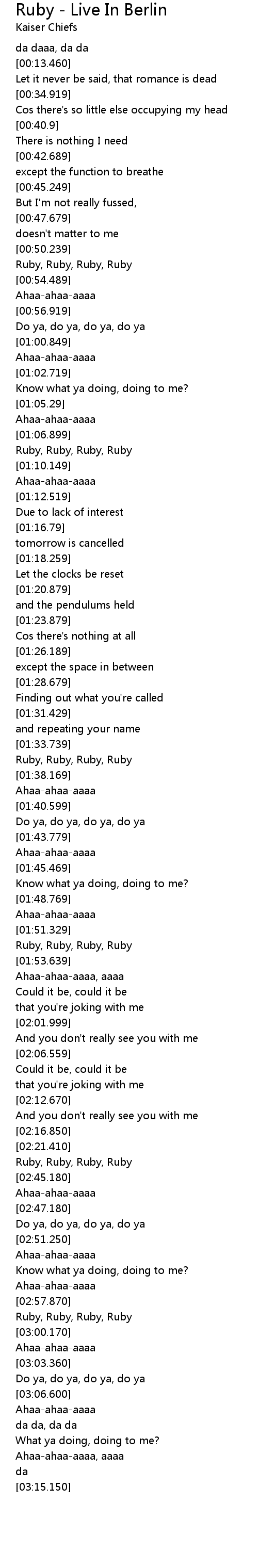 Ruby, Ruby, Ruby, Ruby |