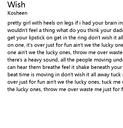 | pretty girl with heels on legs if i had your brain instead then i probably wouldn't feel a thing what do you think your daddy said, if he ever really cared get your lipstick on get in the ring don't wish it all away tuck me up with me on one, it's over just for fun ain't we the lucky ones, tuck me up with me on one ain't we the lucky ones, throw me over waste me just for fun in the street there's a heavy sound, all the people moving underground, if you're quiet you can hear them breathe feel it shake beneath your feet, drop the rhythm cut the beat time is moving in don't wish it all away tuck me up with me on one, it's over just for fun ain't we the lucky ones, tuck me up with me on one ain't we the lucky ones, throw me over waste me just for fun don't wish it all away |