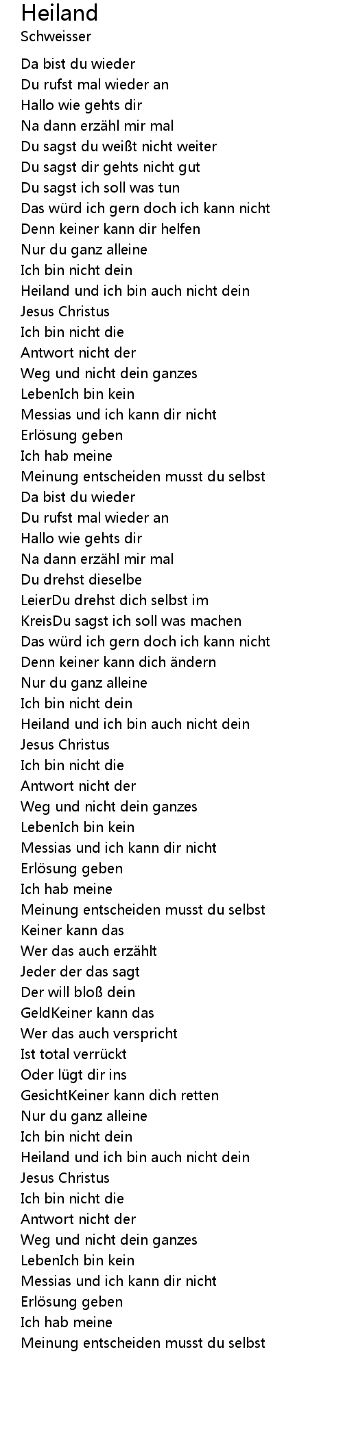 | Heiland und ich bin auch nicht dein | |
