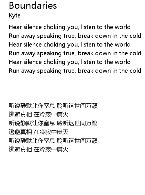 | [00:46.94] | Hear silence choking you, listen to the world |