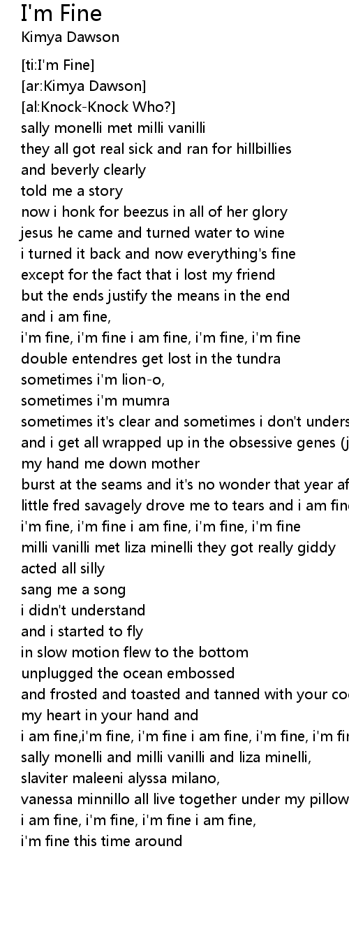 i am fine,i'm fine, i'm fine i am fine, i'm fine, i'm fine |