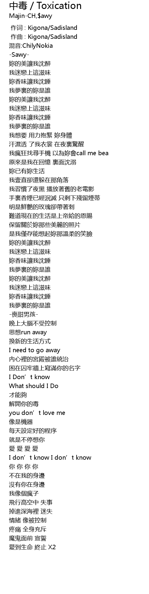 | [00:00.000] | 作词 : Kigona/Sadisland |
