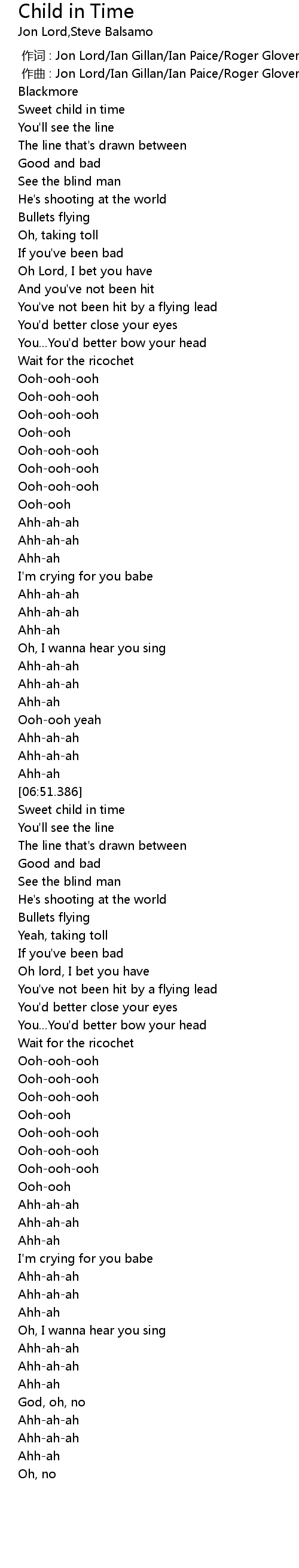 | [00:01.000] | zuò qǔ : Jon Lord Ian Gillan Ian Paice Roger Glover Ritchie Blackmore |