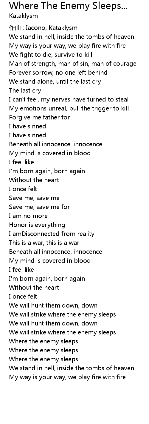 | Song | Where The Enemy Sleeps... |