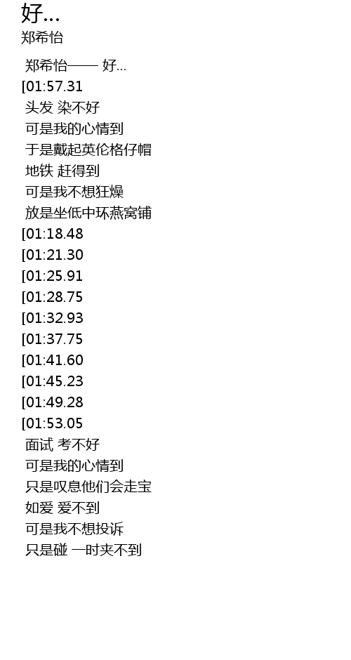 | [00:00.56] | 郑希怡—— 好... |