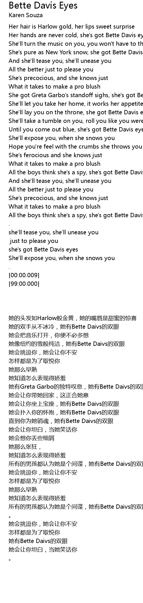 She got Greta Garbo's standoff sighs, she's got Bette Davis eyes |