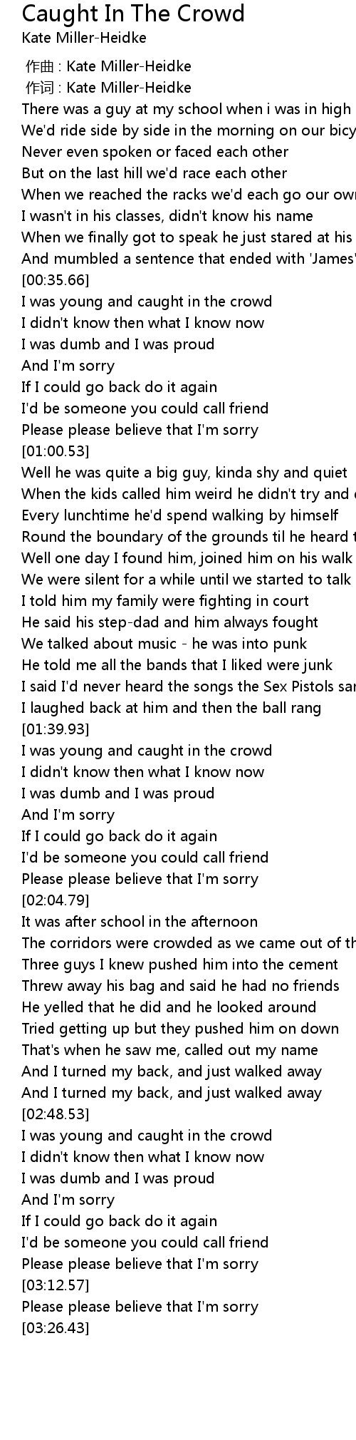 | [00:39.04] | I was young and caught in the crowd |