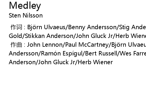 | [00:00.000] | 作曲 : John Lennon/Paul McCartney/Björn Ulvaeus/Benny Andersson/Ramón Espígul/Bert Russell/Wes Farrell/Wally Gold/Stikkan Anderson/John Gluck Jr/Herb Wiener |