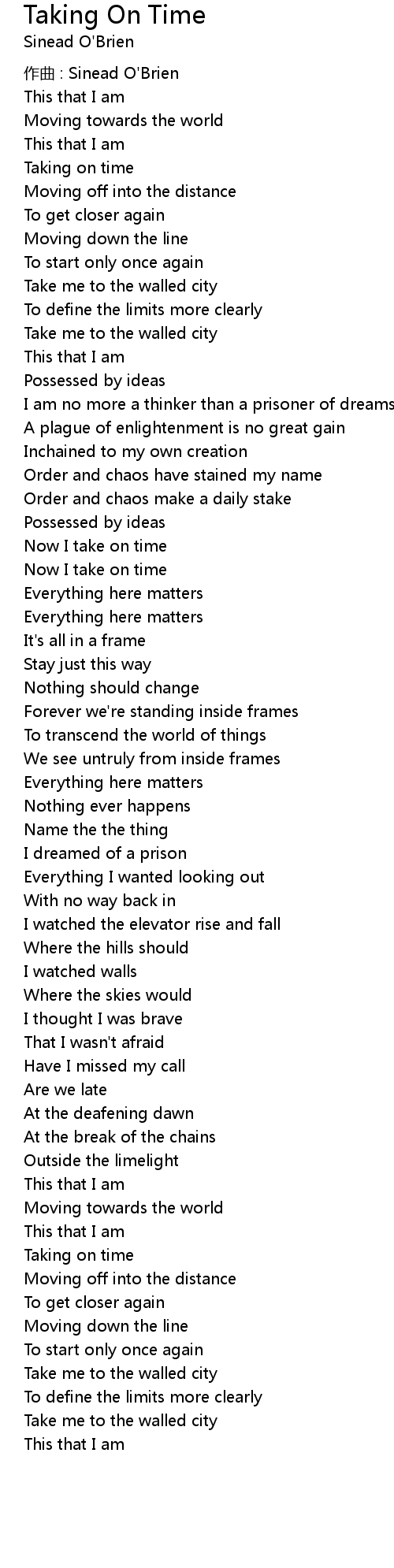 | zuò qǔ : Sinead O' Brien | |