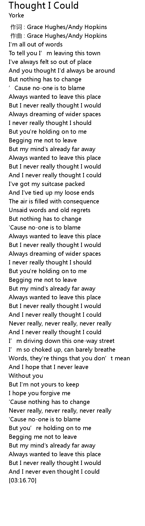 | [00:00.016] | zuo qu : Grace Hughes Andy Hopkins |