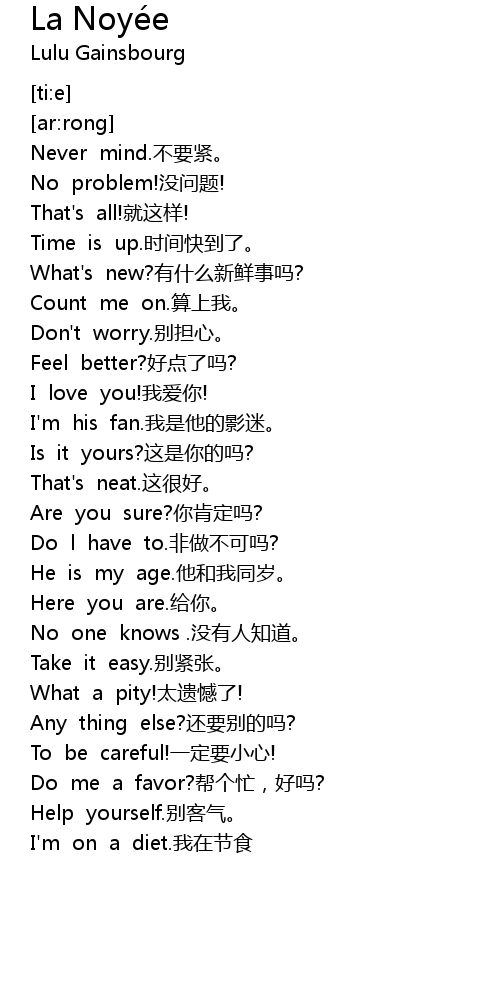 | [00:03.287] | Never mind.不要紧。 |