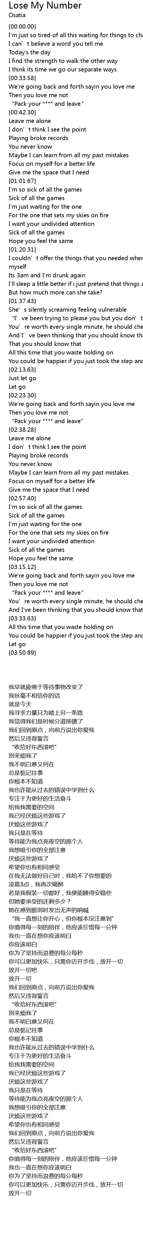 | Song | Lose My Number |