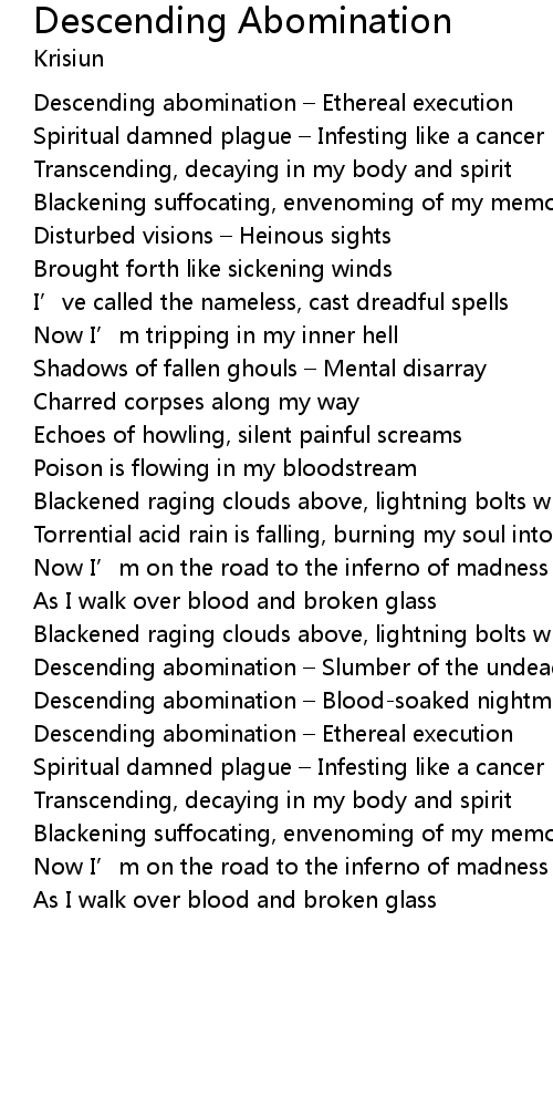| Descending abomination Bloodsoaked nightmare | |