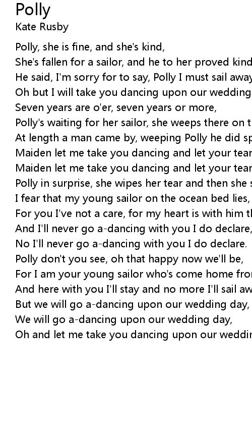 Polly's waiting for her sailor, she weeps there on the shore. |