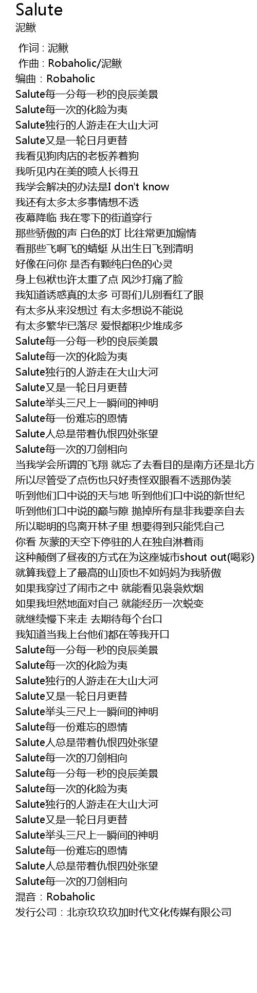 | [01:19.33] | Salute独行的人游走在大山大河 |