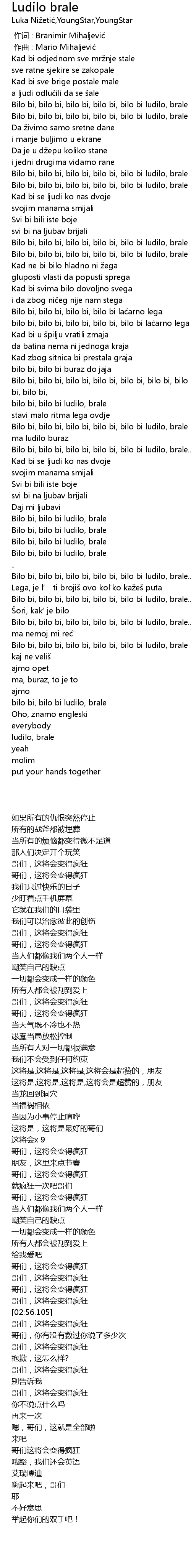 | [00:29.036] | Bilo bi, bilo bi, bilo bi, bilo bi, bilo bi ludilo, brale |