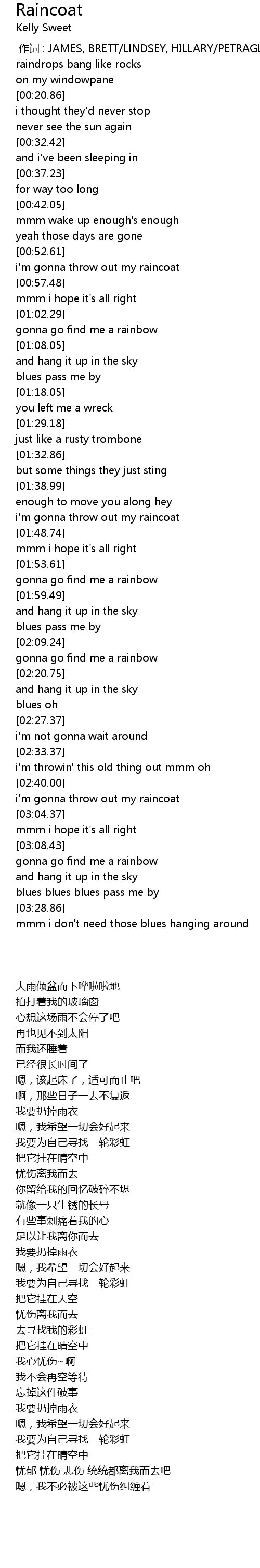 | [02:59.89] | i'm gonna throw out my raincoat |