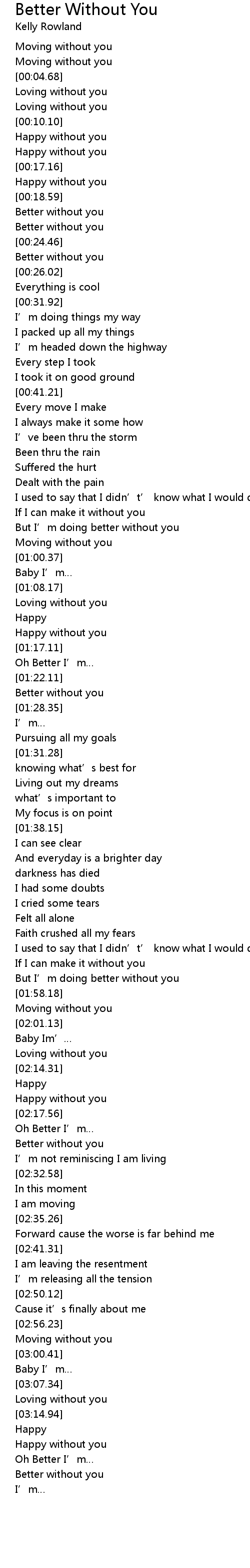 | [00:52.34] | I used to say that I didn' t' know what I would do without you |
