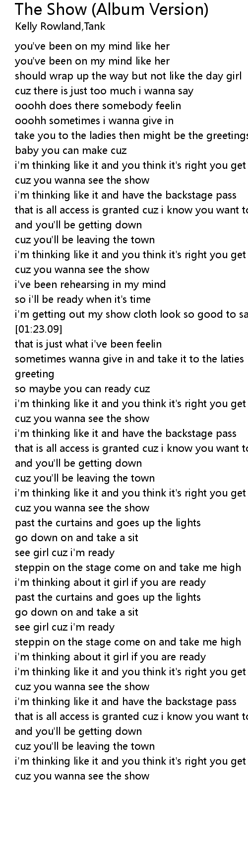 | [00:50.38] | i'm thinking like it and have the backstage pass |