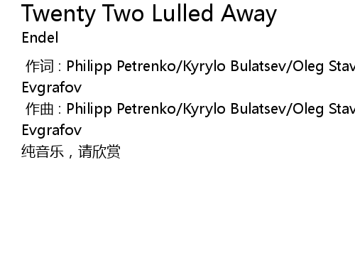 | [00:01.000] | zuo qu : Philipp Petrenko Kyrylo Bulatsev Oleg Stavitskii Dmitry Evgrafov |
