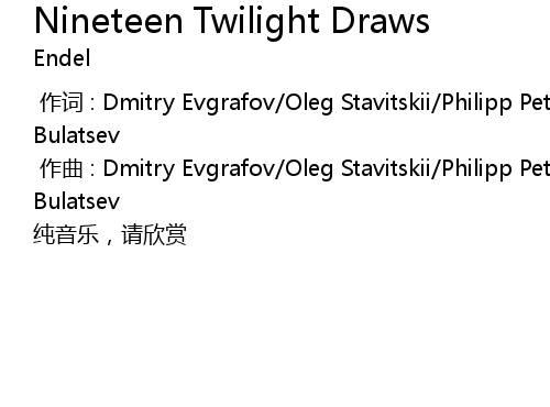 | [00:01.000] | zuo qu : Dmitry Evgrafov Oleg Stavitskii Philipp Petrenko Kyrylo Bulatsev |