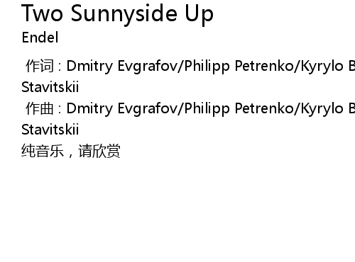 | [00:01.000] | zuò qǔ : Dmitry Evgrafov Philipp Petrenko Kyrylo Bulatsev Oleg Stavitskii |
