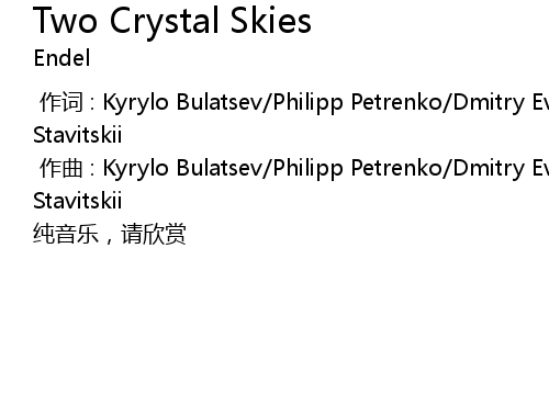| [00:01.000] | zuo qu : Kyrylo Bulatsev Philipp Petrenko Dmitry Evgrafov Oleg Stavitskii |