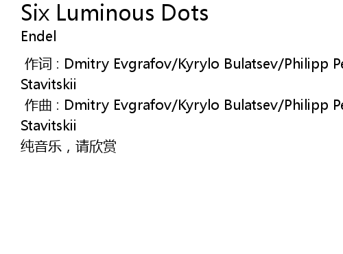 | [00:01.000] | zuò qǔ : Dmitry Evgrafov Kyrylo Bulatsev Philipp Petrenko Oleg Stavitskii |