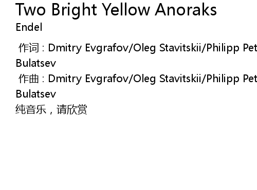 | [00:01.000] | zuo qu : Dmitry Evgrafov Oleg Stavitskii Philipp Petrenko Kyrylo Bulatsev |