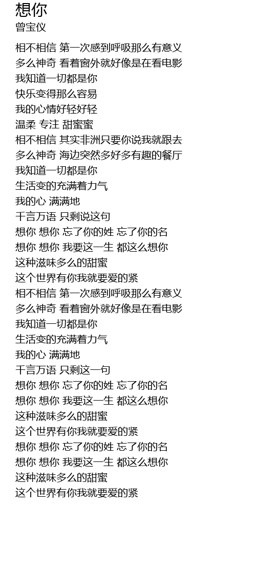 | [03:58.32] | 想你 想你 我要这一生 都这么想你 |