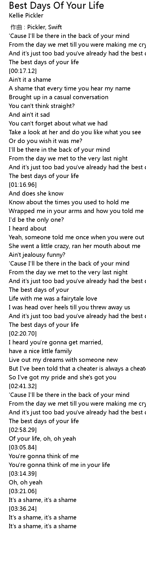 | [02:48.99] | And it's just too bad you've already had the best days |