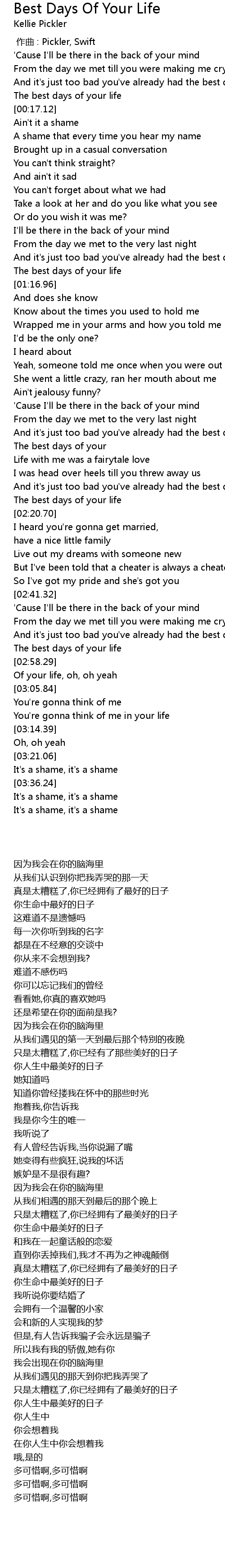 | [02:48.99] | And it's just too bad you've already had the best days |