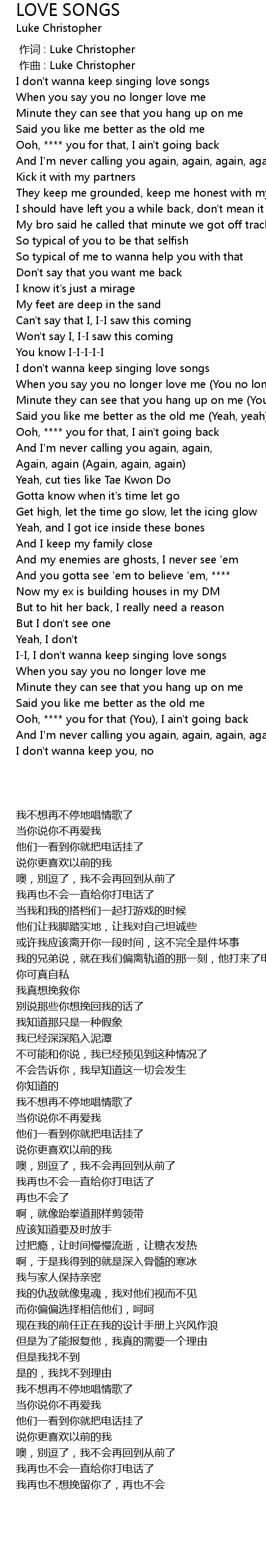 | [00:00.000] | 作词 : Luke Christopher |