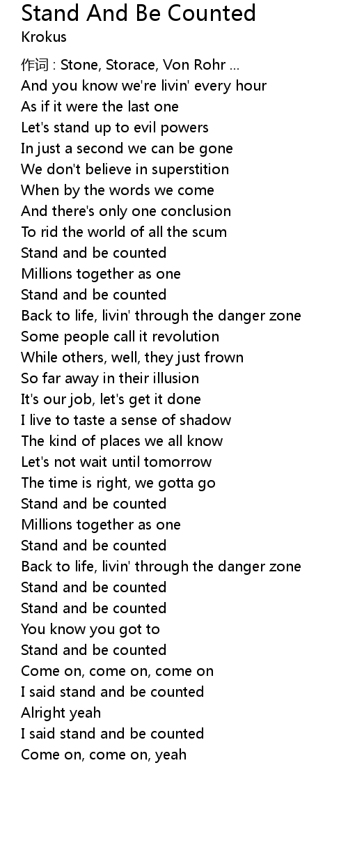 | I said stand and be counted | |