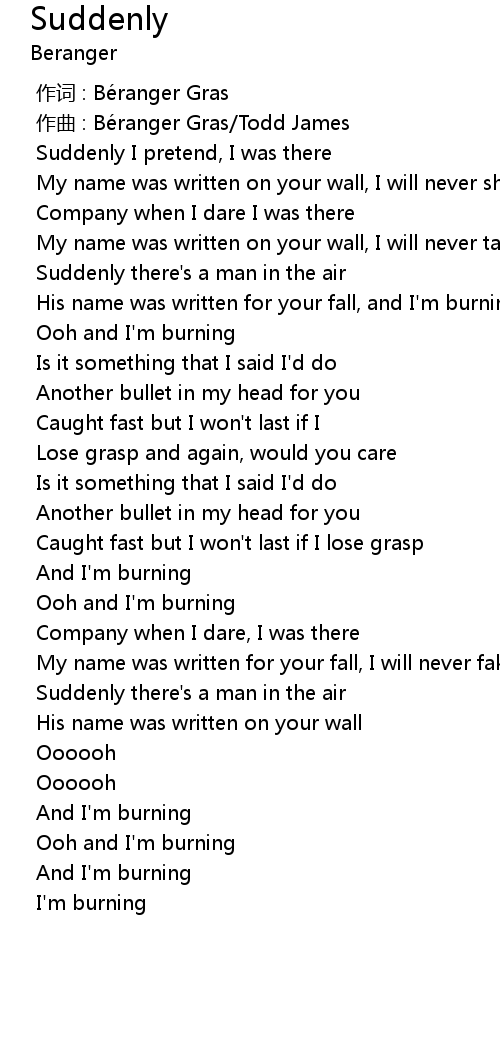 | [00:51.555] | His name was written for your fall, and I'm burning |