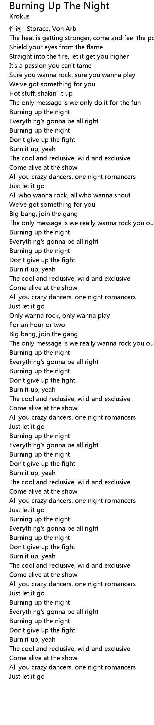 | Song | Burning Up The Night |