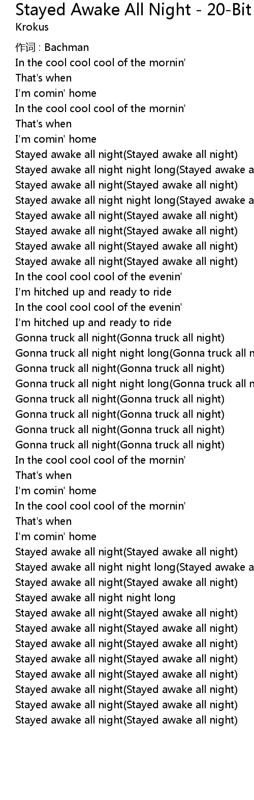 | Song | Stayed Awake All Night - 20-Bit Digital Mastering From The Original Master Tapes: 2000 |