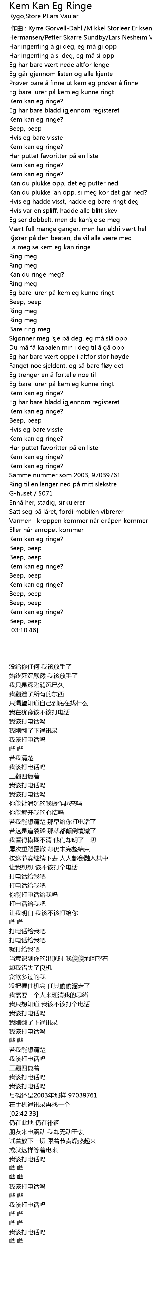 | [03:02.89] | Kem kan eg ringe? |
