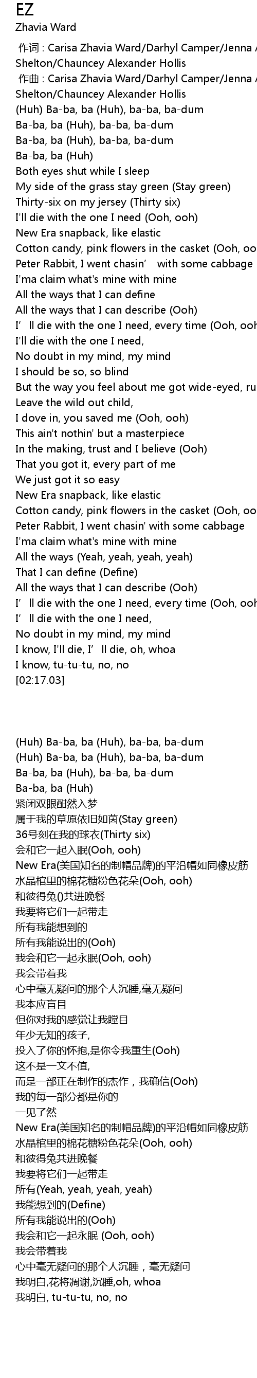 | [00:00.000] | 作词 : Carisa Zhavia Ward/Darhyl Camper/Jenna Andrews/Paul Edwin Shelton/Chauncey Alexander Hollis |