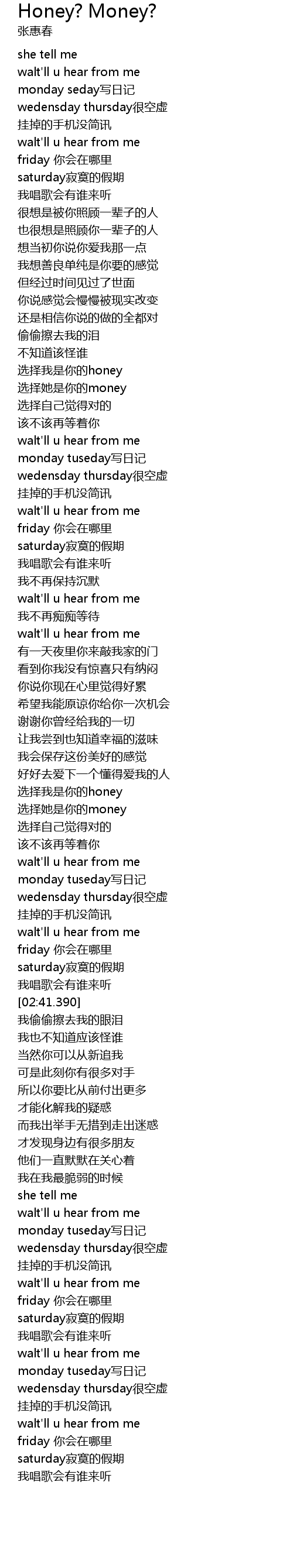| [02:11.159] | xuǎn zé tā shì nǐ de money |