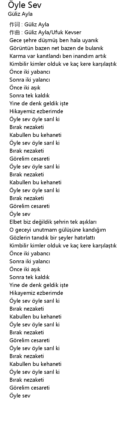 | [00:01.000] | 作曲 : Güliz Ayla/Ufuk Kevser |