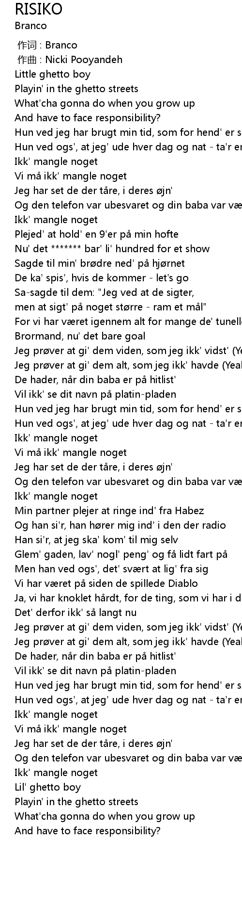 | [02:04.52] | Jeg prøver at gi' dem alt, som jeg ikk' havde (Yeah) |