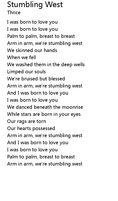 Arm in arm, we're stumbling west |