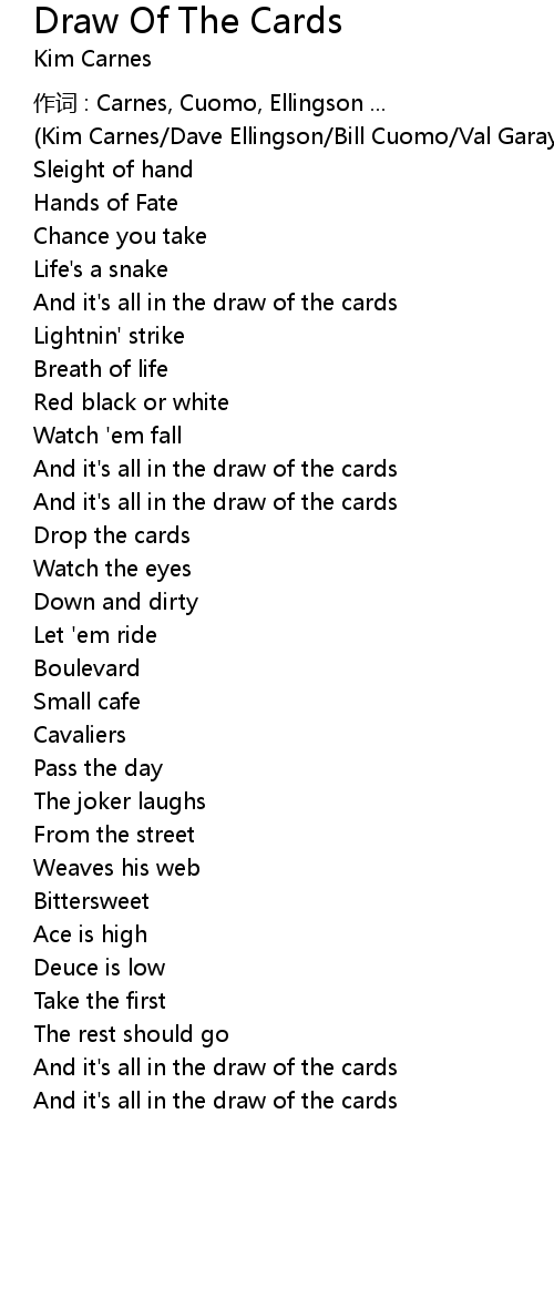 | And it' s all in the draw of the cards |