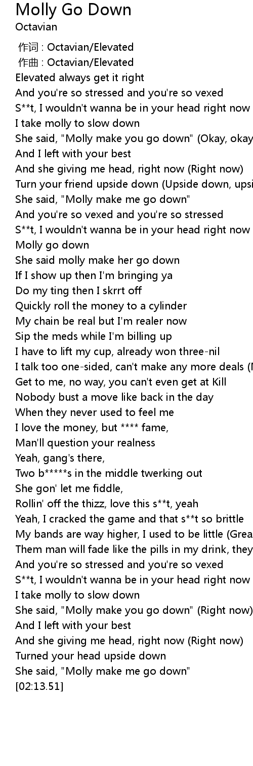 | [00:26.76] | She said, "Molly make you go down" (Okay, okay) |