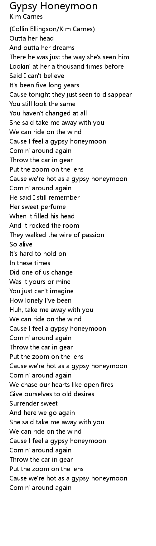 Cause I feel a gypsy honeymoon |