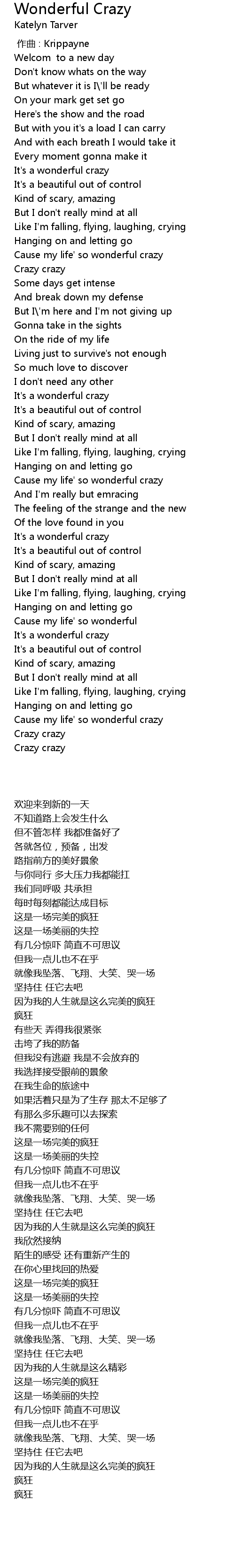| [01:29.310] | It' s a wonderful crazy |