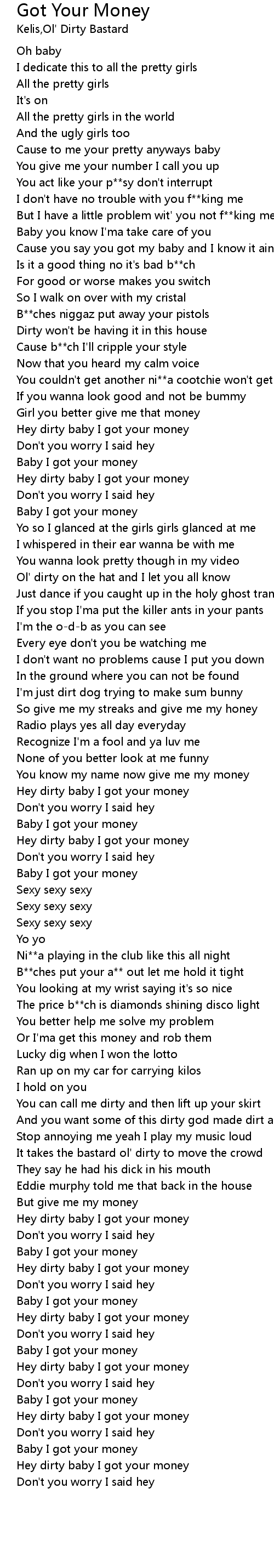 | [00:48.66] | You couldn't get another ni**a cootchie won't get moist |
