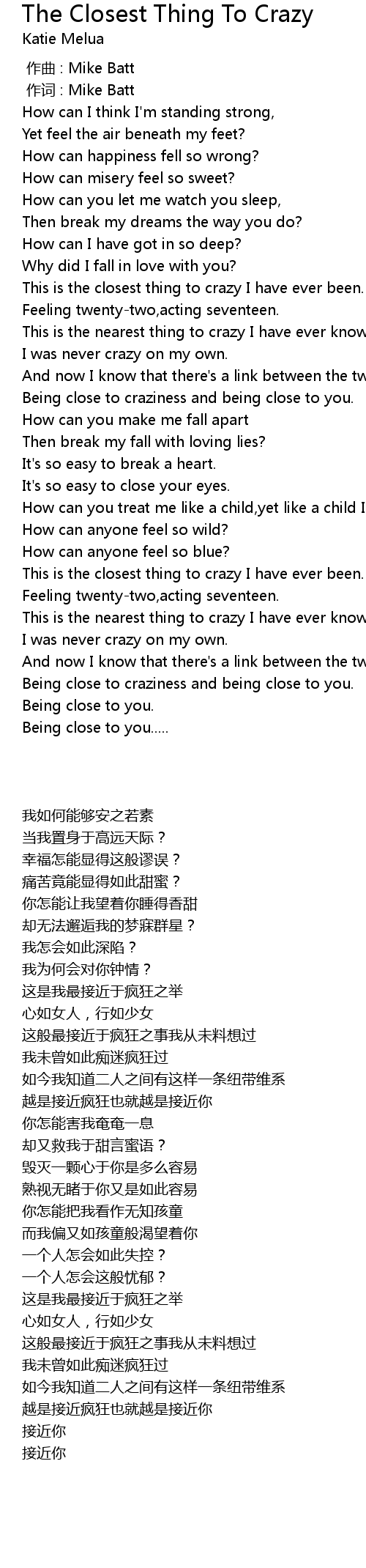 | [03:01.900] | This is the closest thing to crazy I have ever been. |